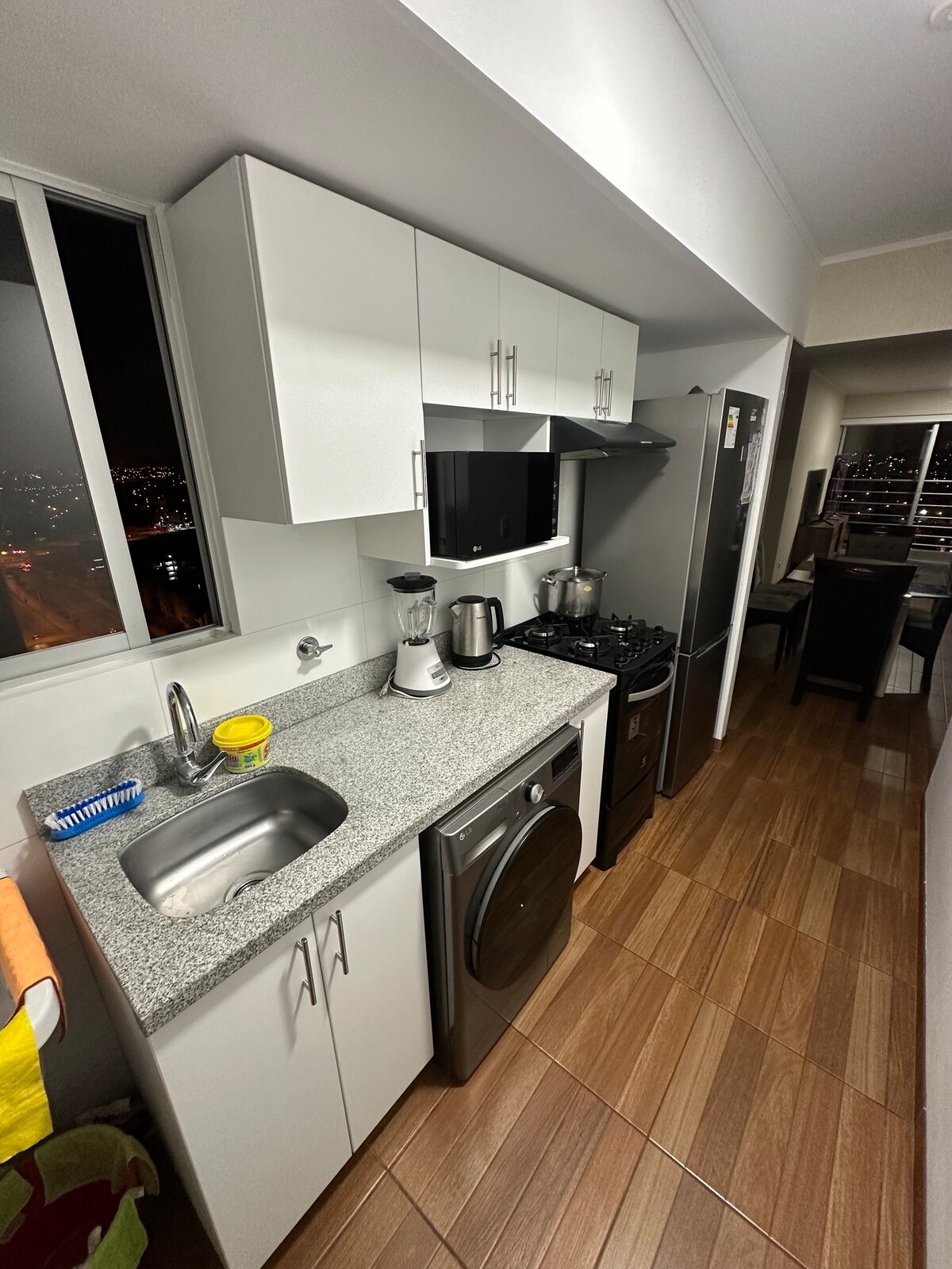 Todo el Departamento para Ti, también para escalas de vuelos, cerca al Aeropuerto (20 min) Relájate y disfruta sus ambientes tranquilos, elegantes con una vista espectacular de día, y de noche el espectáculo visual de la ciudad desde el balcón de tu habitación. Vive una experiencia en un lugar Seguro residencial y céntrico de la capital con acceso a una experiencia gastronómica y relajo totalmente excepcional, con gimnasios, restaurantes, tiendas, bancos y centros comerciales a solo un paso.