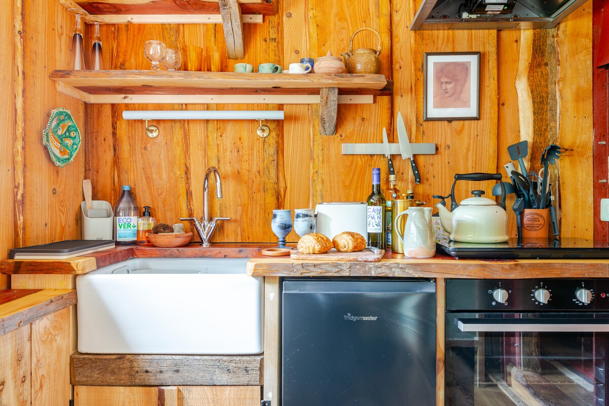 Ağaclarda heyrətamiz mənzərələri olan, gizli, dərəyə döndü. Binokl vadidə yaşayan Barn Owls, Kites, maral, tülkü, porsuq, dovşan, arakəsmə və dələlərdən zövq almaq üçün təmin edilir. Bütün ağac pansionatlar yerli sənətkarlar tərəfindən əl ilə tikilib; qurğular, fitinqlər və çarpayılar "wanet haşiyəli" ağacın müəyyən növündən hazırlanır. Tam təchiz olunmuş mətbəx, əhval-ruhiyyə işıqlandırması və bu möhtəşəm lüks gizlənmələrin kabinədə romantikliyini tamamlayan odun sobası.