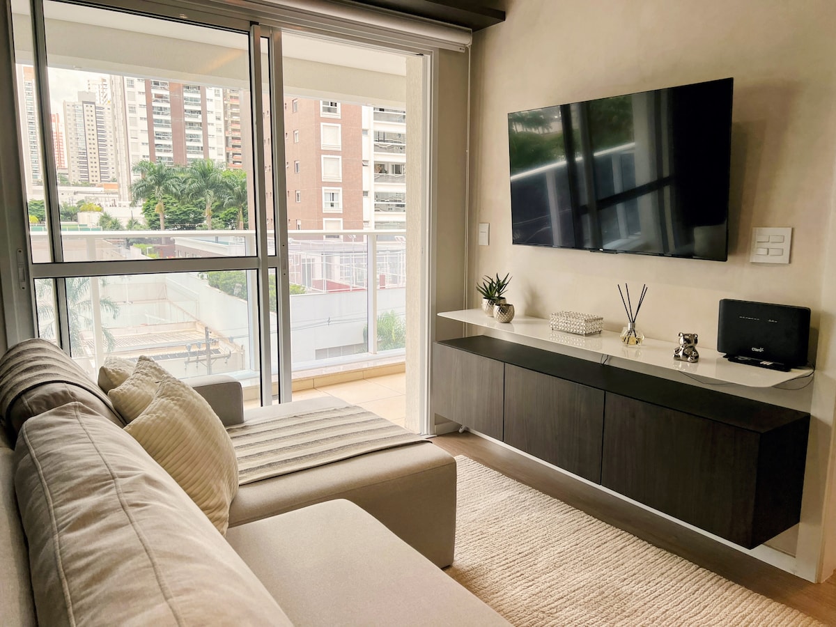 🌴 Refúgio Praiano na Gleba Palhano Qonaqlamanız üçün çimərlik iqlimi olan lüks ✨ bir toxunuş Kondisionerli 🛌 süita, qaralma pərdəsi və şalvar Bəzədilmiş 🖥️ otaqlar: Ağıllı televizor və tavan ventilyatoru 📶 Salam sürətli İnternet 🅿️ Özəl Qaraj 👮 Qəbul masası 24/7 🏊 Hovuz, idman zalı, oyun otağı, iş yoldaşı, kollektiv camaşırxana və ərzaq Ev heyvanlarını qəbul 🐾 edirik! Hər qonaqlamada 01 kiçik heyvana icazə verilir. 📍 İmtiyazlı mövqe Aurora Alış-verişindən ✔ 300 m məsafədə ✔ 500m İqapo gölü