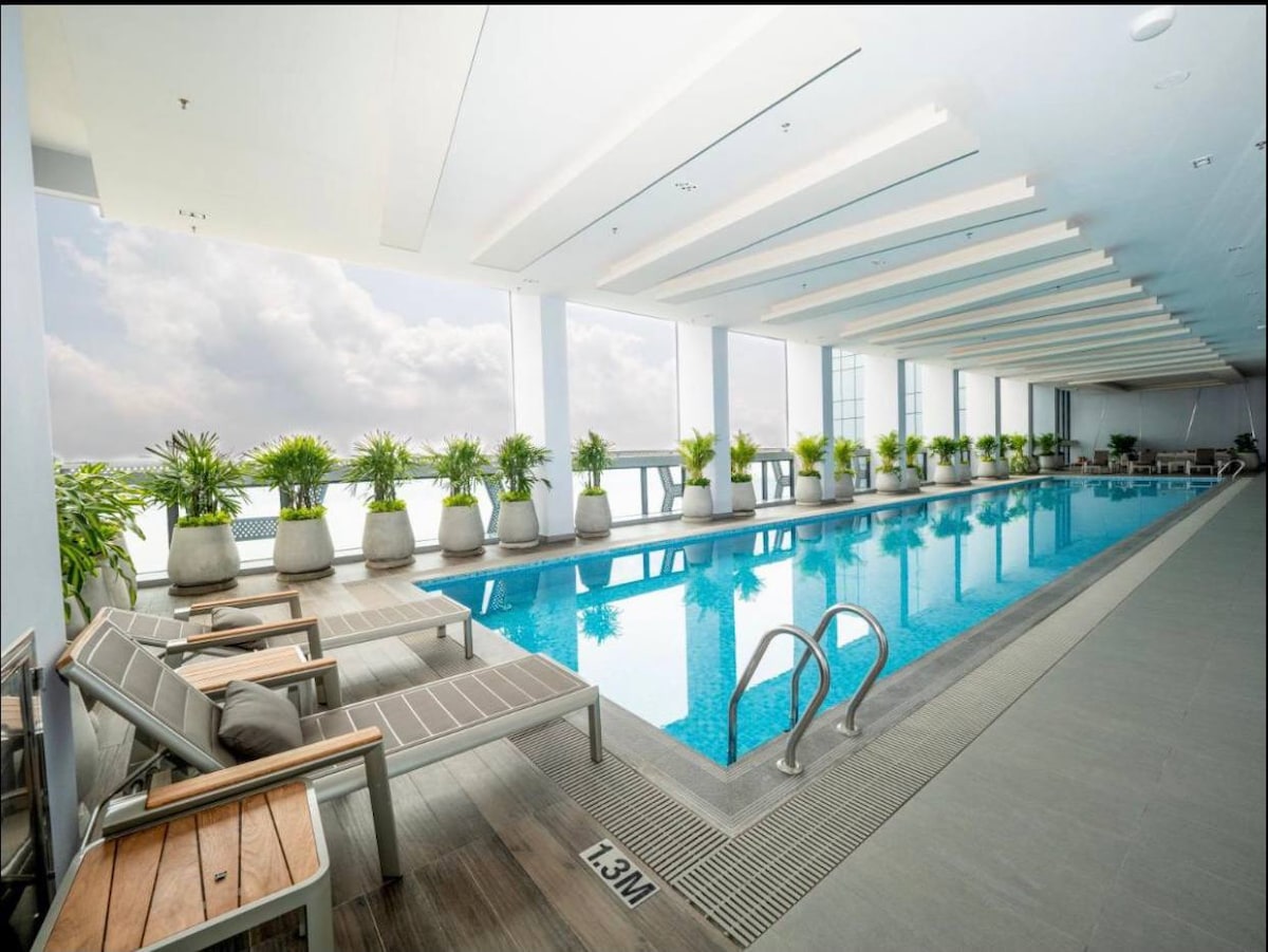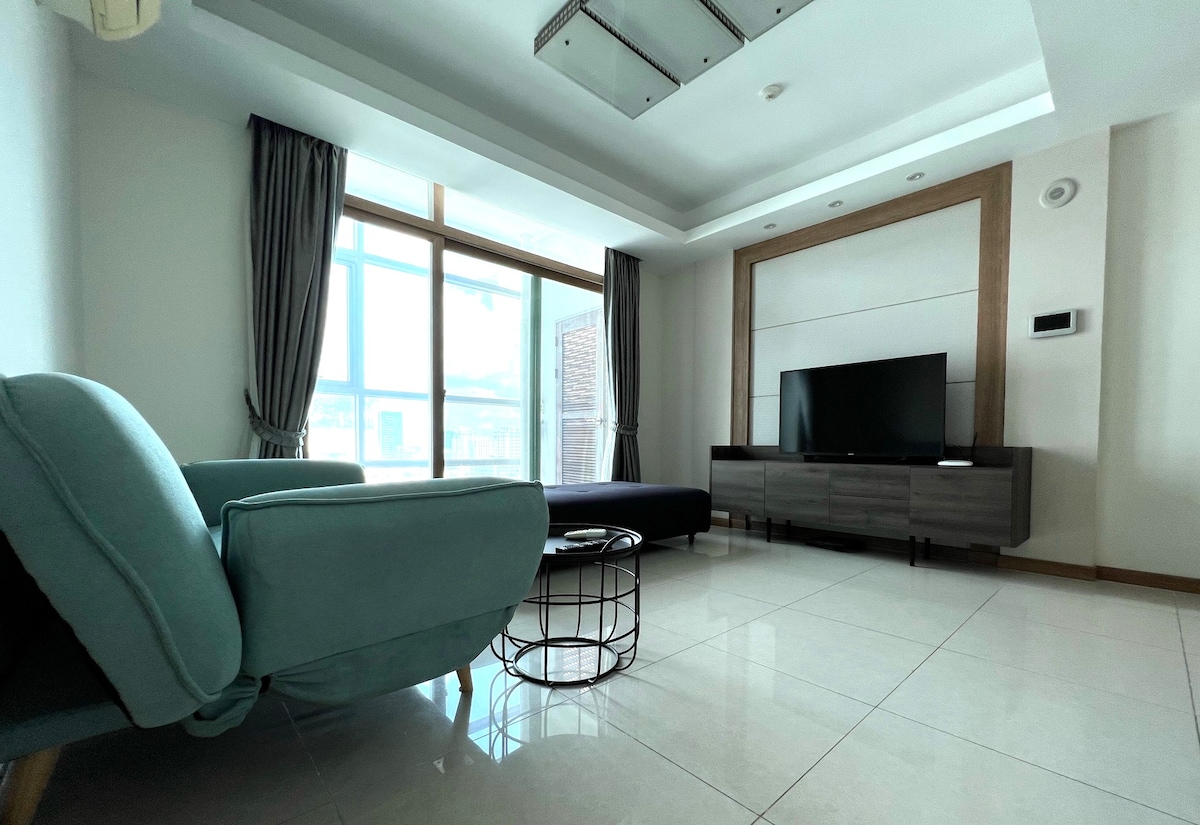 Enjoy a luxurious stay in our beautifully redesigned condo with top-notch appliances (65-inch smart TV, full kitchen, fridge, washer, smart AC, Japanese toilet…) with quality mattress and sofa. Perfect for family🥰, biz execs 💻 or lovely couples. ❤️Full amenities and services: Biz lounge, meeting room, golf simulator, Sky bar, pool, gym, coffee shop and kids playground. Extra beds available for more than 3 guests. We always keep making our house better!
