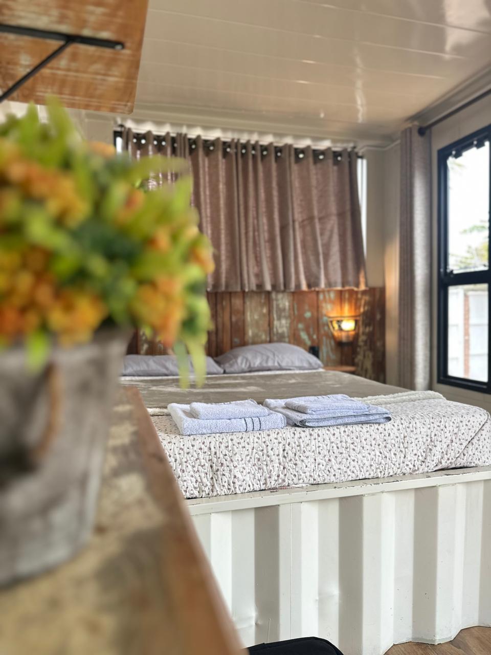 Konteynerdə xüsusi mebellərlə təchiz olunmuş birinci mərtəbədə yerləşən studiya, 15 daxili m2 + 12 m2 balkondur. Tətilləriniz və həftəsonlarınız üçün yaradıcı məkan. Maksimum 3 nəfər üçün. Barbekü, mini meydançalar, Parquinho. İnterpraiasdan 200 metr məsafədə. "Estaleiro çimərliyi Mavi Bayrağa sahibdir" Ev heyvanınızı qəbul edirik, lakin bron sorğusu göndərərkən bu imkanı və qaydaları yoxlayın. TƏTİL və BAYRAMLAR zamanı minimum bron müddəti dəyişə bilər