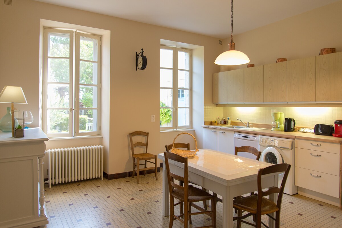 Kəndin mərkəzində, bütün imkanlara (ərzaq mağazası, çörək zavodu, aptek, restoran,...) yaxın və ideal şəkildə St Jacques de Compostelle yolunda yerləşən 65 m2-lik (açıq hava məkanı yoxdur) füsunkar kiçik ev Tək bir cütlük olaraq ailə və ya dostlarınızla (6 çarpayıya qədər) gəlin və gözəl bölgəmizi kəşf edin və bohem üslubunda yeni təmir edilmiş və bəzədilmiş evimizdə qalın. Gömülmüş mətbəxi olan qonaq/yemək otağı 1 böyük yataq otağı, millerin nərdivan girişi olan 1 mezzanin