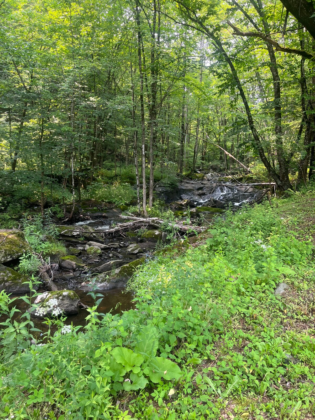 Our property in Vermont is a slice of heaven: Set between Burlington & Stowe, 10 minutes off the main highway I-89, with quick access to the main spots in Vermont, but tucked down a dirt road with nothing but the sounds of the stream. On our property we built The Tuckaway Suite, an entirely private guest suite above our garage. With access to a hot tub, and hiking trails right outside the door, this space is a brand new build with cozy cabin vibes. Follow the journey on IG at @VTstays!