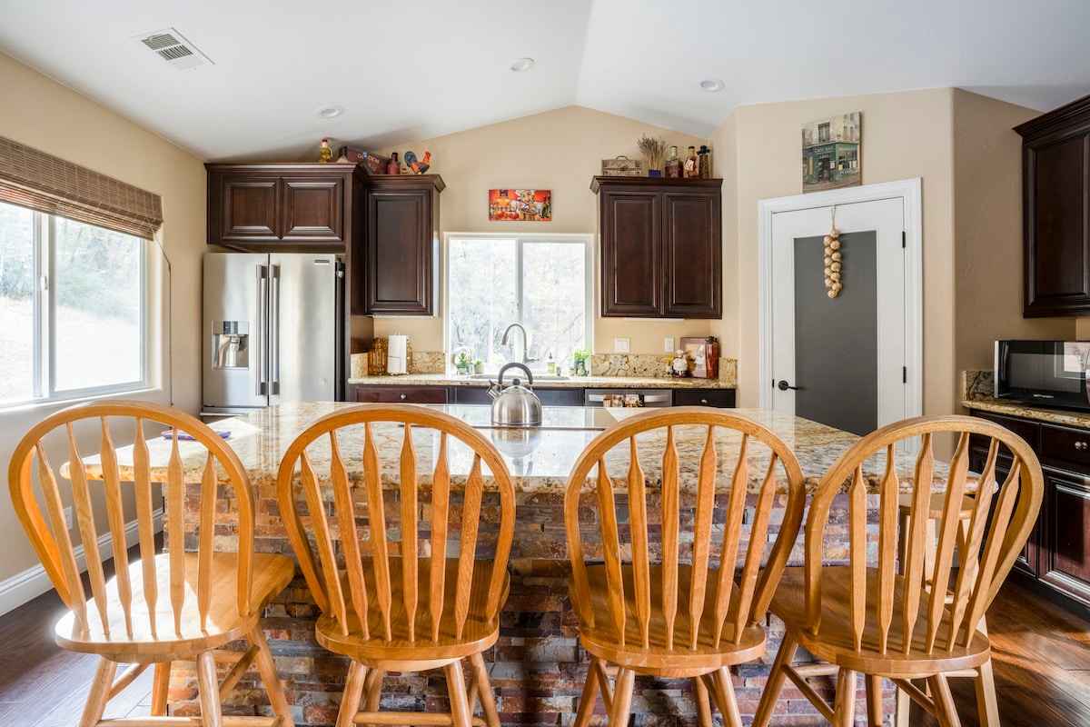 Bütün ailənizi Folsom Gölündən cəmi bir neçə dəqiqəlik məsafədə yerləşən 4 yataq otaqlı ranço istirahət mərkəzimizə gətirin. * Açıq qonaq otağında dincəlin * Tam təchiz olunmuş mətbəxdə birlikdə bişirin * Təmiz yataq dəsti ilə rahat yataqlarda möhkəm yuxu İmkanlar: * Sürətli Wi-Fi və ağıllı televizor * Paltaryuyan/qurudan maşın * Kondisioner və istilik * Şəxsi veranda və barbekü * Asan öz-özünə giriş və bir saat ərzində cavab verən Super Ev Sahibi. Mövsümi Hovuz Mövsümdən asılı olmayaraq istirahət üçün gözəl/ Atlar - Vəhşi təbiət/ Ev sahibləri mehribandır və 10 hektar ərazidə yaşayır.