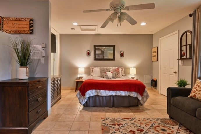 1 Əsas Yataq Otağı, 2 Yataq Otağı və Ofisi (1500 SF) olan yeni təmir edilmiş ev. Evdə böyük göyərtəyə sürüşən qapısı olan açıq konsepsiyalı Mətbəx/Yemək/Qonaq otağı var. Ev sizə havalı və rahat qonaqlama təmin etmək üçün tamamilə parçalanıb. SJC hava limanından cəmi 15 dəqiqəlik məsafədə yerləşir və Cənub Körfəzi Bölgəsindəki əksər əsas təyinat nöqtələrinə qısa məsafədədir. Bütün imkanlara və tam məxfiliyə malik evdən uzaqda ev axtaran ailələr və ya işgüzar səyahətçilər üçün idealdır.