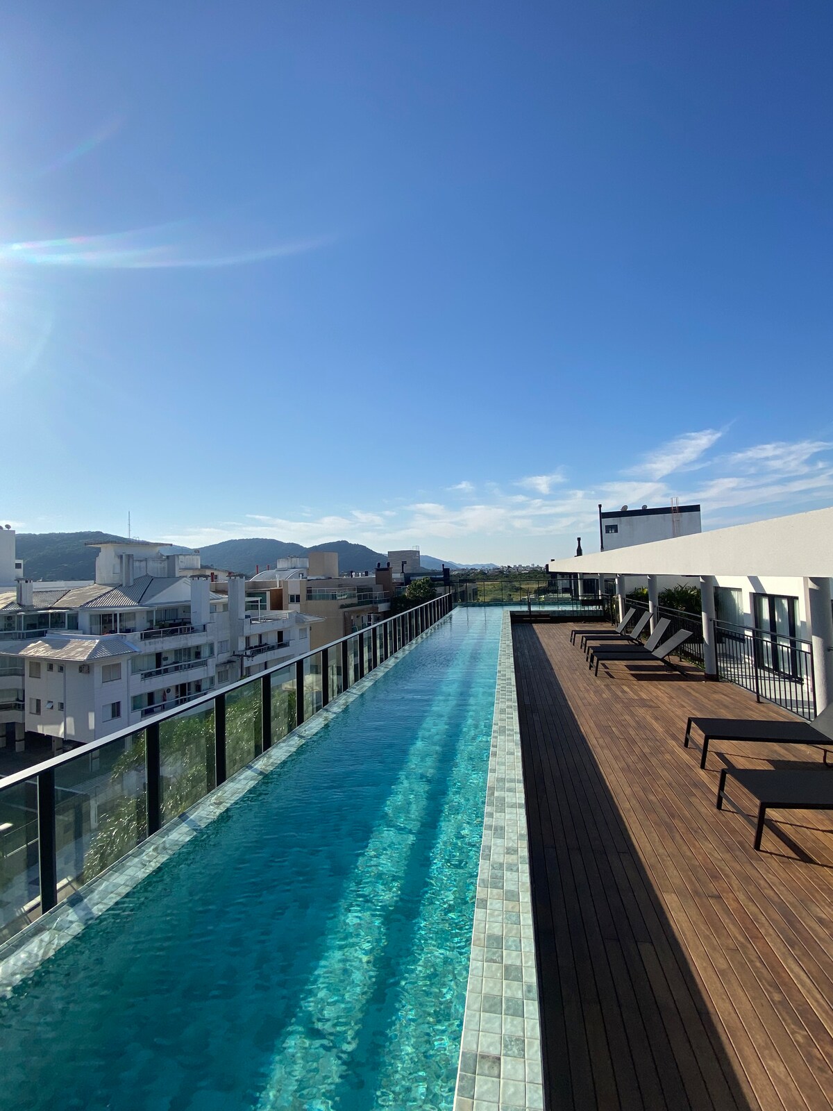 Novo Kampeçe çimərliyindən 200 metr məsafədə yerləşən yeni loft. Məkanda böyük ölçülü çarpayı və divan çarpayı var. Tam mətbəximiz, yataq dəstimiz, hamamımız və əla qonaqlama üçün lazım olan hər şeyimiz var. Kondominiumda üzgüçülük hovuzu, cakuzi, trenajor zalı, gün batımı və terrasda ay var. Çimərlik Braziliyada ən paradizakallardan biridir. Məhəllə çox təhlükəsizdir, yaxşı restoranları, barları var və hava limanına yaxındır. Evimiz Florianópolisdə yaşamaq üçün ən yaxşı və ən gözəl yerdə yerləşir.