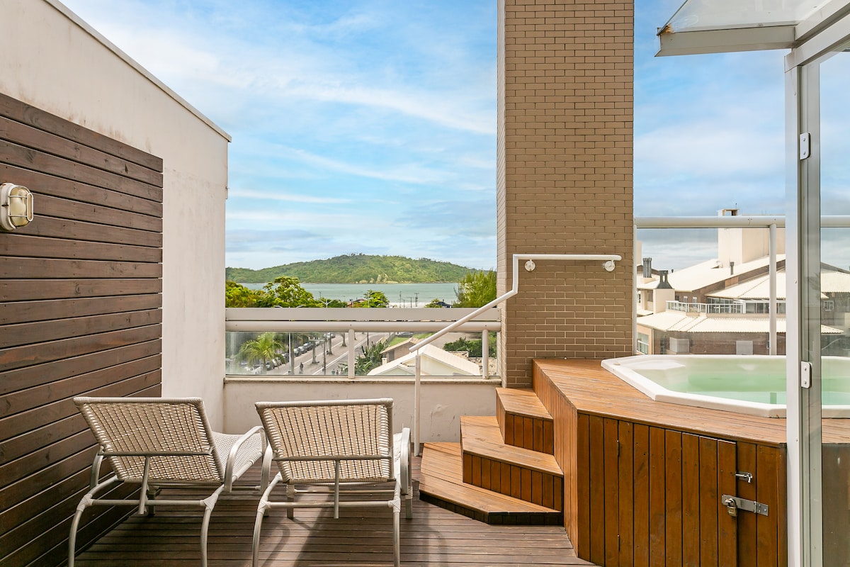 Florianópolisin ən gözəl çimərliklərindən biri olan Kampeçe çimərliyinin qarşısında ümumi məxfilik, okean mənzərəsi, cakuzi, barbekü və böyük açıq hava terrası olan lüks penthaus! Tətilinizi Tay Beach Home Spa kondominiumunda keçirmək 5 ulduzlu kurortda olmaq kimidir. Qızdırılmış qapalı hovuz, açıq sonsuzluq hovuzu, qapalı və açıq cakuzisi, idman zalı, oyun meydançası, inanılmaz ümumi məkan ilə! Restoran, çörəkxana, supermarket və mağazaların yaxınlığında mərkəzi mövqe.