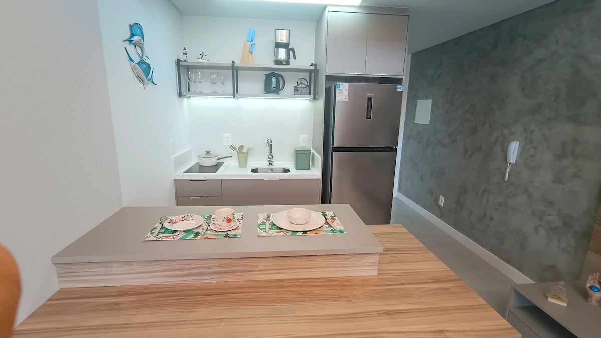 Braziliyanın ən gözəl yerlərindən birində və Jurerê Internacional-ın ən premium nömrələrindən birində dincəlin, dincəlin və günəşdən zövq alın. Eyvandan külək və gün batımı mənzərəsindən zövq ala, yaxud oyanıb günün çimərlik, yoxsa qızdırılmış hovuz üçün mükəmməl olub-olmadığına qərar verə bilərsiniz. Jurerê Internacionalın bar və restoranlarının canlı atmosferindən zövq almaq üçün uzağa getməyə ehtiyac duymayan tək və ya cütlüklər üçün ideal mövqeyə malik mənzil.