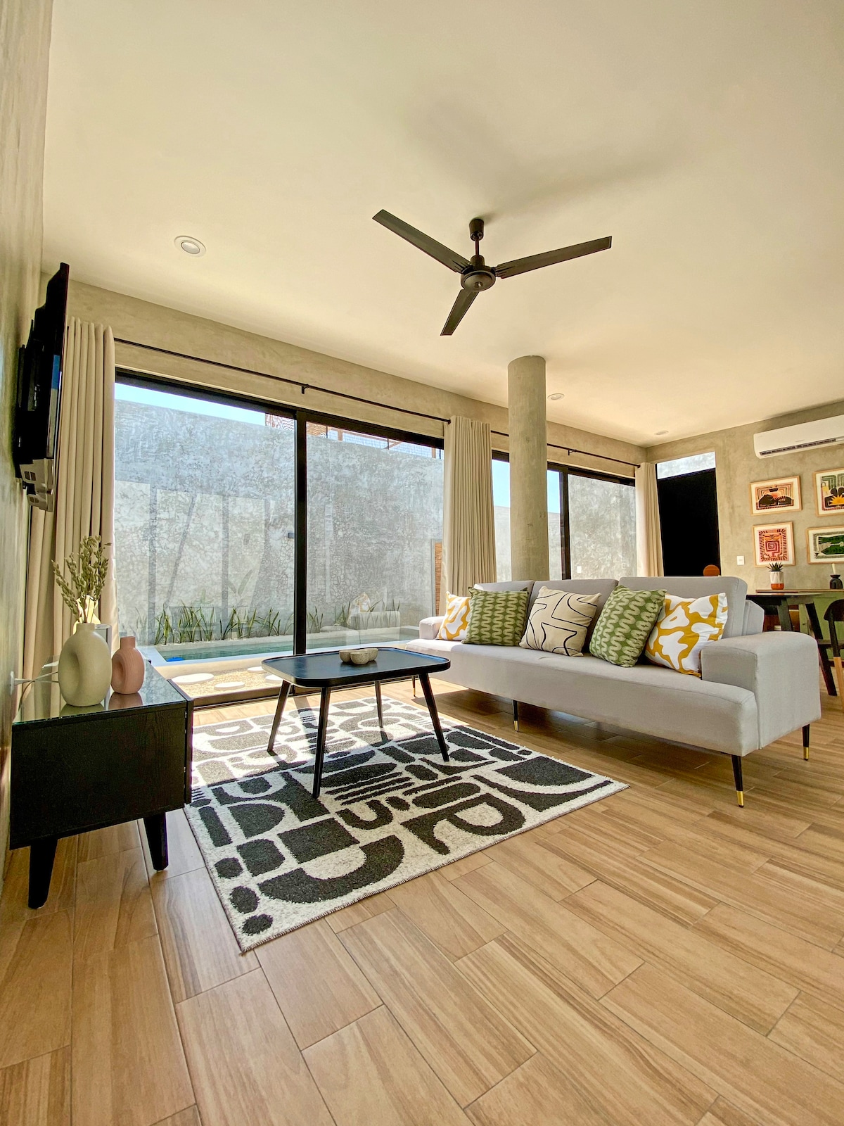 Mənzil Loft üslubunda (40 m2) qapalı kompleksdə (cəmi 5 mənzildən ibarətdir). Mənzildə sosial məkan, bişirmək üçün əsas şeyləri olan kiçik mətbəx, yuxarı mərtəbədə 1 yataq otağı, əla yataq otağı, 1 vanna otağı var. Məkan 2 nəfər üçün idealdır, lakin 3 nəfəri rahatlıqla qəbul edə biləcəyimiz divan çarpayımız var. Parkinq yeri teh əmlakının daxilindədir. Paseo de Montejo və Centro şəhərlərindən avtomobillə 10 dəqiqə, şəhərin şimalında isə 10 dəqiqə uzaqlıqda yerləşir. Dövrə ilə əla əlaqə. Parque de la Aleman 2-3 blok uzaqlıqda.