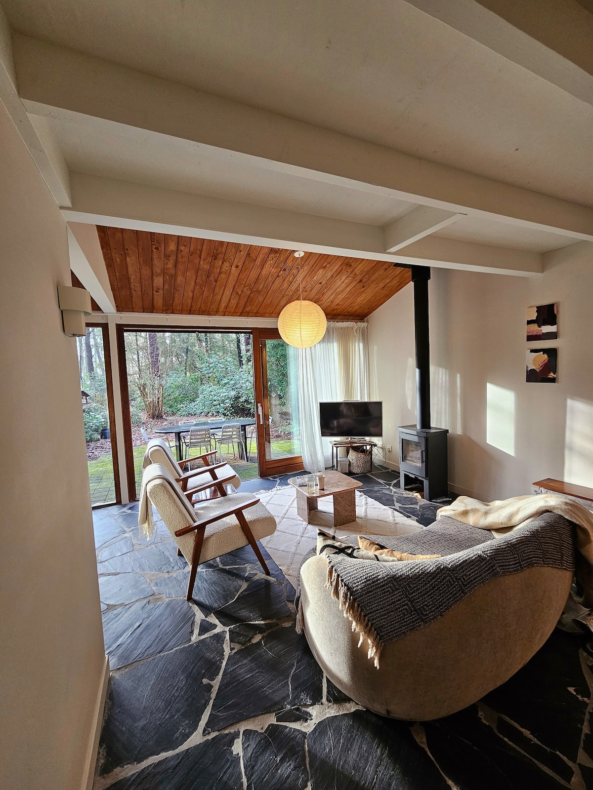 Our cozy bungalow is located in the middle of the woods of the Overijssel Vechtdal. The forest house has a beautiful sauna and a big (wild) garden of more than 1000 m2 where you can rest and enjoy all the flora and fauna. From the cottage you can walk, cycle and swim for hours. There are beautiful routes and you can easily jump in a canoe or enjoy a terrace in the lively Hanseatic town of Ommen. Experience it for yourself with SISU Natuurlijk: it's wonderful coming home to the fireplace here.