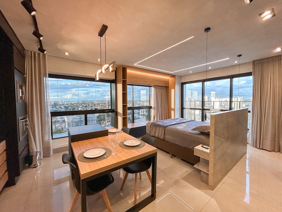 Jardim dos Estadosda panoramik mənzərələri və tam strukturu olan müasir studiya. 4 nəfərə qədər yerləşir (çarpayı və divan-çarpayı), kondisioner, 300 mbps Wi-Fi, avadanlıqla təchiz olunmuş mətbəx, iki Smart TV və şəxsi örtülü qaraj var. Binada: istilikli hovuz, sonsuzluq hovuzu, quru sauna, fitnes mərkəzi, kovorkinq, oyun otağı və camaşırxana (ödənişli istifadə). Şəhərin ən yaxşı yerlərindən birində 24 saatlıq köməkçi, panoramik lift və çoxlu rahatlıq.