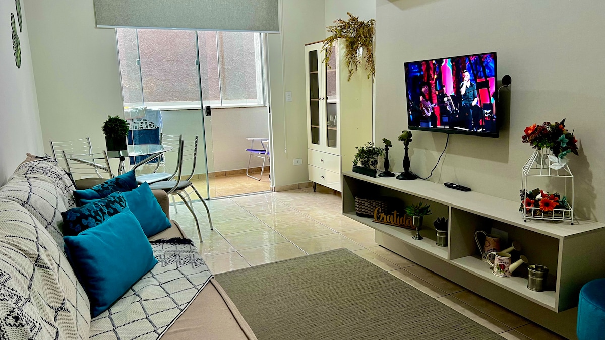 Apartamento no centro. Perto do Terminal, academia, mercado, padaria, Bk e barzinhos. Cama de casal e tv no quarto. Espaço exclusivo. 1 vaga de garagem. Cozinha com todos itens, Airfryer, liquidificador, etc.