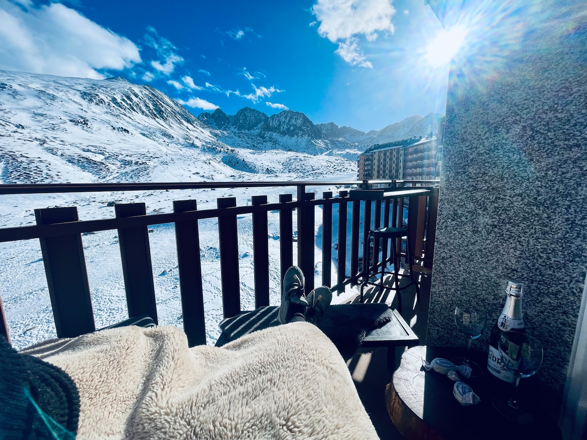 Enjoy a stylish experience in this central accommodation located just about 80m from the ski slopes, with direct access to all necessary services (bars, restaurants, supermarkets, pharmacies, sports shops) just out of the portal. The space has all the comfort and everything you need to spend unforgettable days. It faces east and has a balcony where you can relax with a book, eat, have a drink while contemplating the spectacular mountains.
