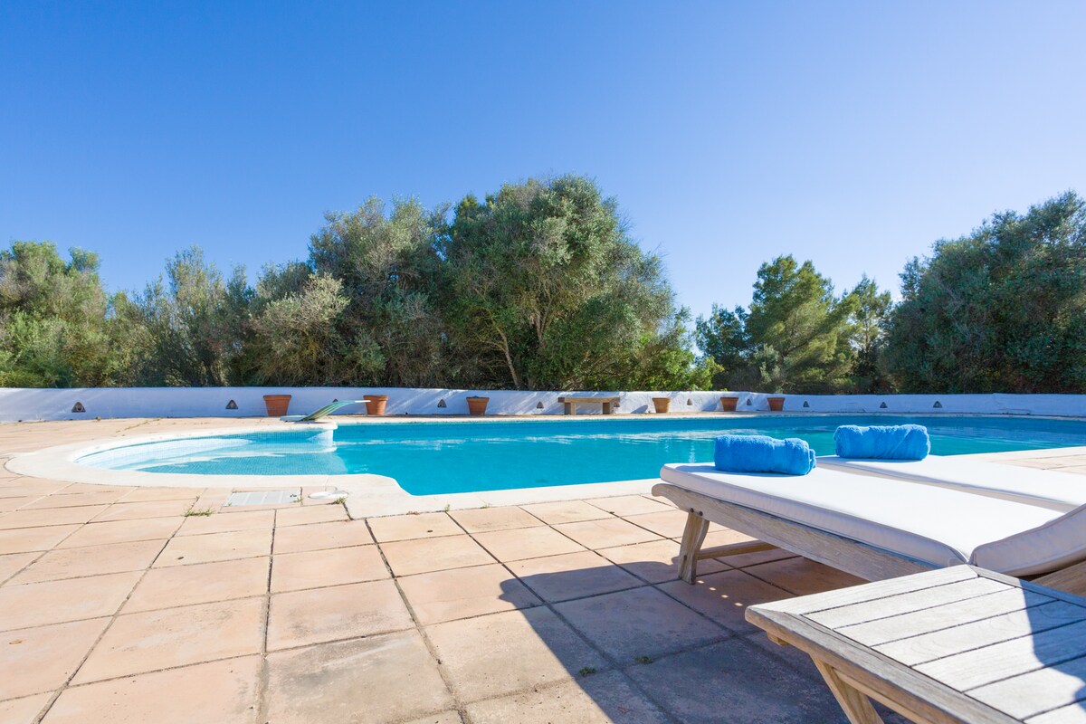 Köhnə ağaclar və çiçəkləri olan romantik yaşıl bağda yerləşən füsunkar, butik üslublu villa. Terrasları, soyunub-geyinmə sahələri və gözəl kiçik ayrıca hovuzu ilə əmlak 8-9 qonaq üçün əla məkan və məxfilik təklif edir. Kondisioneri olan 4 yataq otağının hamısı. İnternet: yüksək sürətli fiber-optik! 6 dəqiqəlik məsafədə Cala Llonga gözəl qumlu çimərliyinə çatırsınız. Restoranlar, supermarketlər, mağazalar və taksi stendinə cəmi 4 dəqiqəlik məsafə var. İbiza qolfuna və ya Santa Eulariyaya 5 dəqiqəlik məsafədədir; İbiza qəsəbəsinə 12 dəqiqəlik məsafə var.