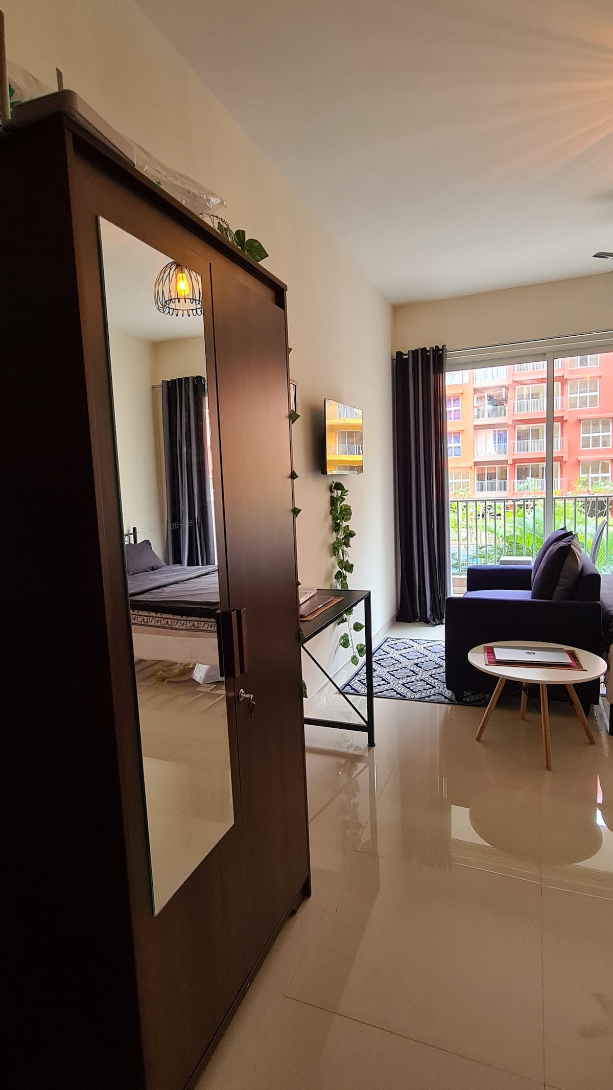 Bu, iki eyvanı olan bir yataq otaqlı mənzildir; biri hovuz və uşaq parkı ilə üzbəüz. Mənzil lazım olan hər şeylə, yəni 180-22 sm-lik çarpayı, şkaf, təhlükəsizlik vağzalı, paltar dəyişmək masası, hava kondisioneri, paltaryuyan maşın, airbnb su filtri, qeyzer, tam funksional mətbəx, soyuducu, divan, televizor və s. ilə təchiz olunub. Mənzillərdəki ləvazimatlara hovuz, uşaq parkı, idman zalı, Wi-Fi, lift, Təhlükəsizlik daxildir.