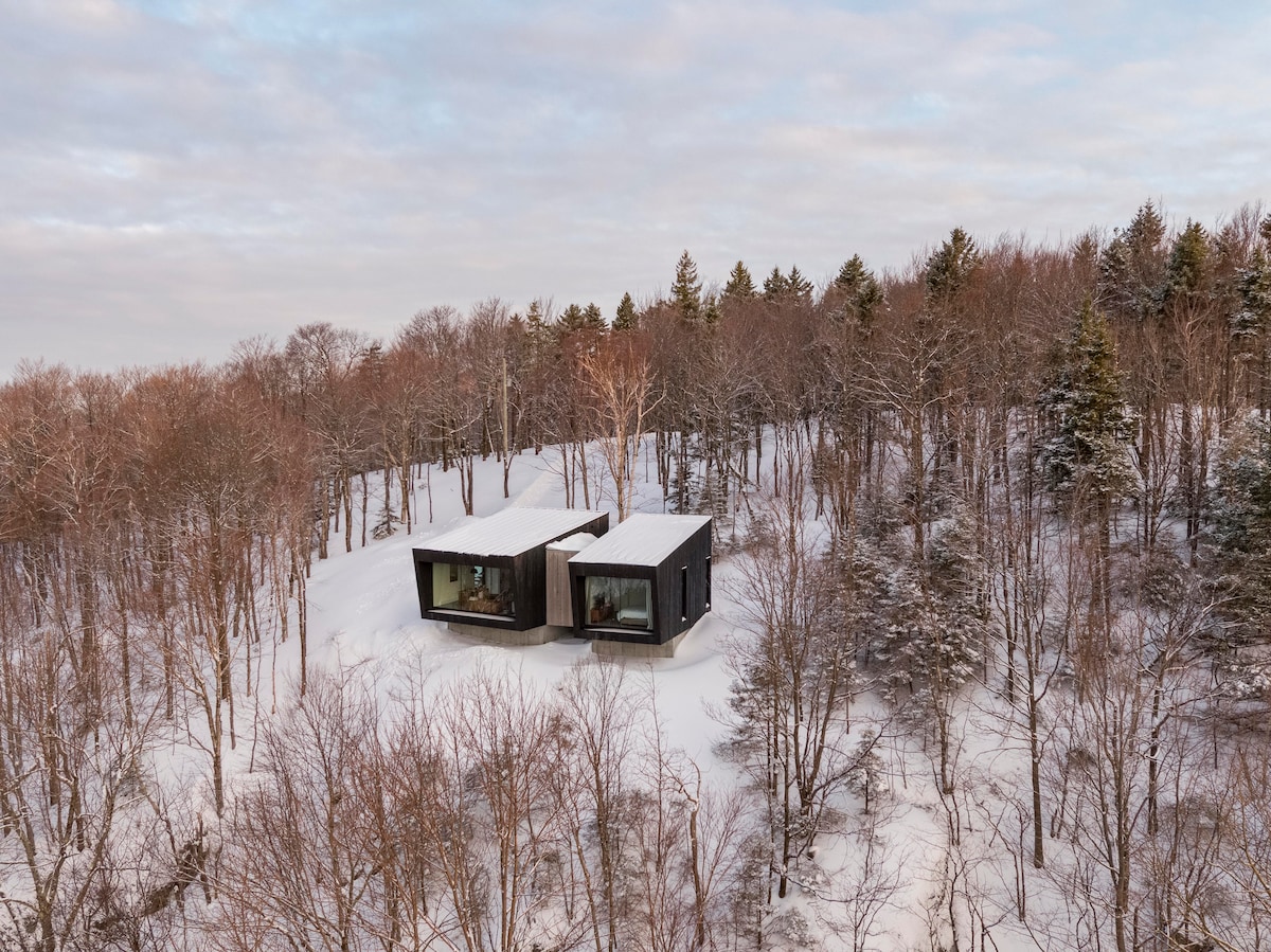 _naturehumaine memarları tərəfindən rahat vaxtsız dağ evi konseptuallaşdırılıb. 490 metr (1600 fut) hündürlükdə qayalıqda yerləşən unikal dizaynı cəsarətli və özünəməxsusluğu ilə fərqlənir və ətraf mühitə uyğun gəlir. Meşə ilə əhatə olunmuş kottec Qlen dağının və ətrafdakı təbiətin əsasən Appalaç Dəhlizi ilə qorunan heyranedici mənzərələrini təklif edir. İstirahət etmək və dincəlmək üçün mükəmməl səssiz yer. Foto: Adrien Uilyams / S.A. CITQ #302449