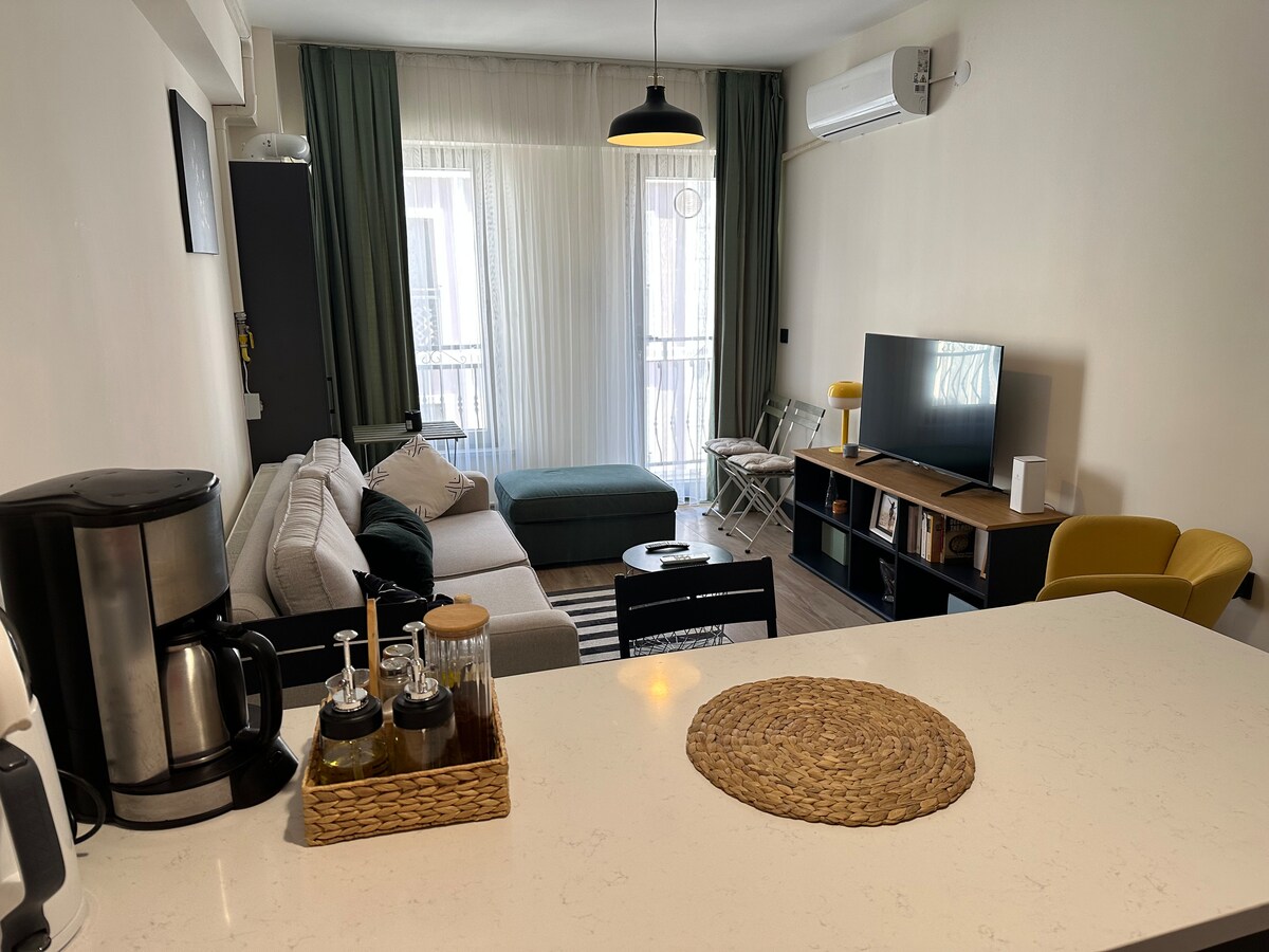 Müasir və yeni dizayn edilmiş mənzilimiz çimərlikdədir 2 dəqiqə; şəhər mərkəzinə, muzeylərə və görməli yerlərə 5 dəqiqəlik piyada məsafədə. Yeni binamızın yerləşdiyi mövqe sayəsində burada həm dinc, həm də xoş bir qonaqlama təklif edirik. Evdə Rahatlıq və İmtiyazlar: -Wi-Fi və Ağıllı ev sistemi -Kondisioner (Soyutma) və Otaq Termostatı İstilik Sistemi - Google Home ilə işıqlandırma və cihaz idarəetməsi - Dəbli və dəbdəbəli dizayn detalları ilə evinizin rahatlığını yaşayın - Alış-veriş və tarixi məkanların yaxınlığında mərkəzi mövqe