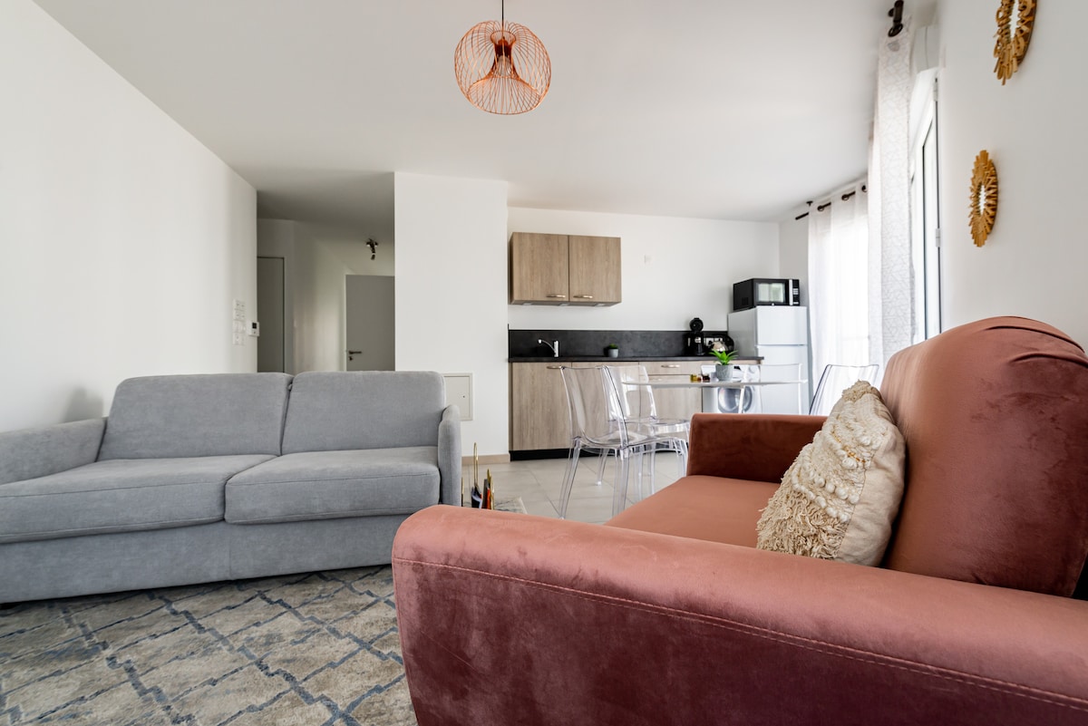 Mənzil təchiz olunmuş mətbəxdən, divan çarpayısı olan geniş 27m2 qonaq/yemək otağından (140x190 yataq) ibarətdir. 160x200 çarpayısı olan böyük paltardəyişmə otağı olan bir yataq otağı. Və nəhayət, duşu olan hamam otağı. Şəhərin mərkəzinə, qatar stansiyasından 2 addım məsafədə, xəstəxanadan 100 m məsafədə və yaxınlıqdakı bütün mağazalara yaxın olacaqsınız. Siqaret çəkməyə icazə verilmir Qışda elanın temperaturu 20 / 21°. Mənzil başına 2 avro ödəməklə əlavə ödənişlə hamam dəsmalları. Senso qəhvə maşını