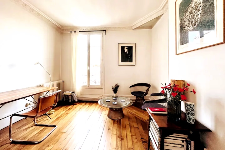 Birbaşa mənzərəli Kanal Sen-Martin boyunca, dəbli 10-cu döngədə yerləşən ən yüksək mərtəbəli mənzilimizə xoş gəlmisiniz. Sevimli kafelərə, mağazalara və canlı yemək səhnəsinə çöldə addımlayın. İçəridə cənuba baxan pəncərələri olan sakit həyətə baxırsınız. Əlavə qonaqlar üçün tam təchiz olunmuş mətbəx, geniş ölçülü çarpayı və lazımlı divan çarpayı var. Klassik Haussmannian və Skandinaviya dizaynının qarışığı olan məkanımız Paris tətiliniz üçün mükəmməl şəraitdir. Sizə ev sahibliyi etmək üçün səbirsizlənirik.