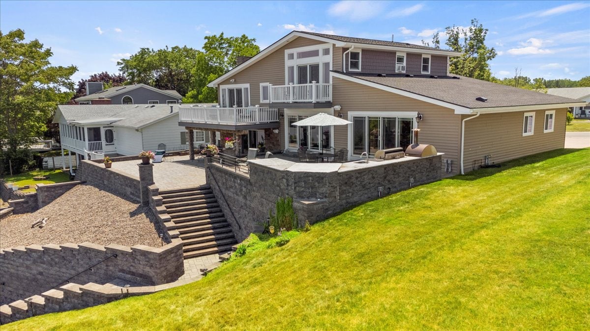 75’ Lakefront | 6 Outdoor Zones | Wellness Nook Relax at True North, a 2,500 sq ft sanctuary with 6 outdoor living spaces (4 patios/2 decks). ✔ Host: Custom beverage bar with 50lb ice maker & wine fridge (BYOB). Enjoy the granite kitchen & wood-fired pizza oven. ✔ Wellness: CLIMBR gym with lake views, canoe/life vests, & sandy beach access (0.1 mi). ✔ Retreat: Dual Master Suites with private balconies. Spot Bald Eagles & swans from the fire pit. High-end comfort for 8!