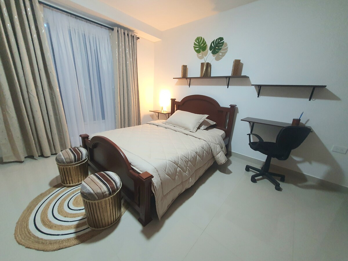 Roldanillo, Valle del Cauca şəhərlərini ziyarət edirsinizsə və mərkəzi və çox imtiyazlı mövqeyə ehtiyacınız varsa, mənzilimiz sizin üçün ən yaxşı seçimdir. O, şəhərin mərkəzindən cəmi 2, Rayo Muzeyindən isə 3 blokda yerləşir. Bu mənzil tamamilə ixtiyarınızdadır. Orada rahat qonaqlamaq, özünüzü evdəki kimi hiss etmək və gecə səs-küydən uzaq istirahət etmək üçün lazım olan hər şeyi tapacaqsınız.