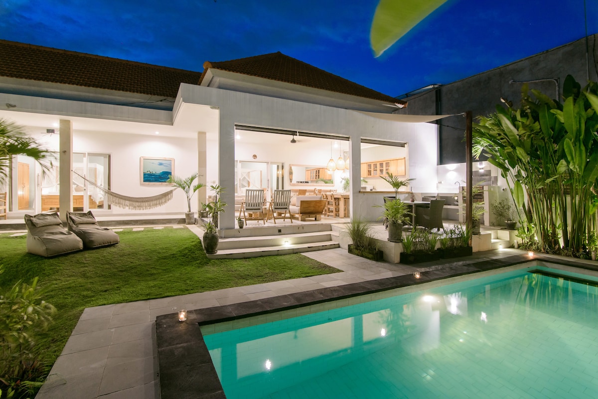 Playa 12 Canggu Villa Canggu mərkəzində yerləşən yeni, müasir dizayner villasıdır. Bu gözəl və rahat Villa dünyaca məşhur Canggu Beach və Finn's Beach Club-dan cəmi bir neçə dəqiqəlik məsafədə, Avokado Fabriki Restoranından cəmi 1 dəqiqəlik məsafədə yerləşir və ailə üçün son Bali gəzintisi üçün mükəmməldir. - Açıq və ya qapalı qonaq otağı - Güclü Wi-Fi - Tam təchiz olunmuş mətbəx - Öz şəxsi bağınız və hovuzunuz - Hər birinin yuxarısında hamam otaqları olan 2 yataq otağı