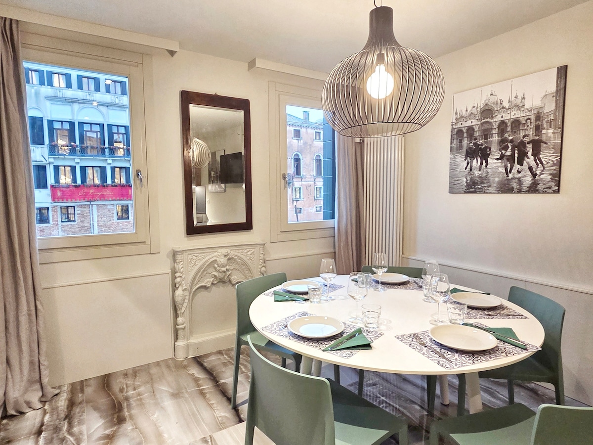 1600-cü illərə aid xüsusi palazzoda Venesiya üslubunda dekorasiyaya malik, HEYRƏTAMİZ MƏNZƏRƏSİ olan bütöv mənzil. 1-ci mərtəbədə yerləşən mənzildə 150-179 sm ölçülü çarpayısı olan böyük yataq otağı var. Hamam otağı genişdir və böyük duşla təchiz olunub. Mətbəx soyuducu, toster, çaydan və Nespresso maşını ilə tam təchiz olunub. Giriş bir qədəh şərabdan zövq alarkən otura və əsasən suya toxuna biləcəyiniz kanal mənzərəli çox böyük bir yaşayış sahəsinə açılır.
