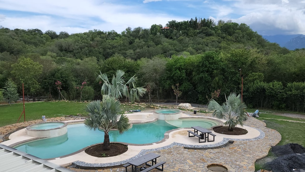 Un encantador oasis de tranquilidad rodeado de naturaleza, a solo treinta minutos de Monterrey. Acogedora y pensada para regalarte momentos de paz, diversión y descanso. Perfecta para parejas, familias o grupos de hasta 8 personas. Con 🏊♂️ alberca 🪵 asador🌙 hamaca ✨ Vive la experiencia del campo con todas las comodidades que mereces. La mejor decisión 🌿¡Reserva hoy!