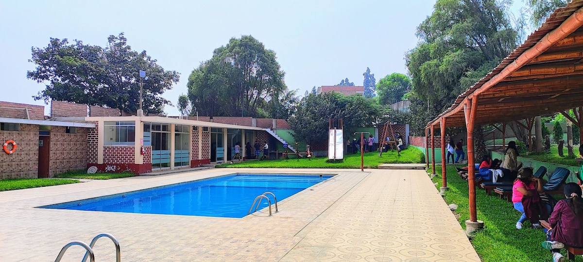 🌞 İl boyu günəş işığına çıxın! Limadan cəmi 2 saat məsafədə yerləşən Kasa-de-Kampomuzda unudulmaz tətil yaşayın. Santa Rosa de Quivesdə eksklüziv kondominiumda yerləşir, üzgüçülük hovuzlarına, qrillərə, yaşıl sahələrə və təchiz olunmuş mətbəxə çıxışı var. Ailə və ya dostlarınızla zövq almaq, stressdən ayrılmaq və təbiətlə yenidən əlaqə qurmaq mükəmməldir. Təhlükəsizlik, rahatlıq və istirahət sizi gözləyir. Bron edin və dincəlməyə başlayın. 🌿