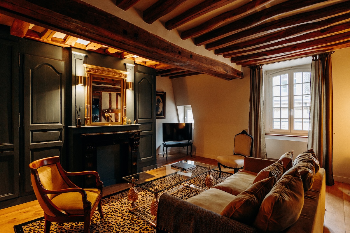 Rare appartement spacieux, lumineux et très calme de 65m2, situé en retrait sur cour en plein cœur du centre historique piéton de Rouen. Logement confortable, propre et bien insonorisé grâce au double vitrage. Il dispose d'une chambre avec literie de qualité, d'un agréable salon spacieux, d'une cuisine ouverte entièrement équipée et d'une salle de bain avec baignoire. Idéal pour un séjour confortable à deux, au calme, dans un emplacement central exceptionnel. Ménage professionnel inclus.