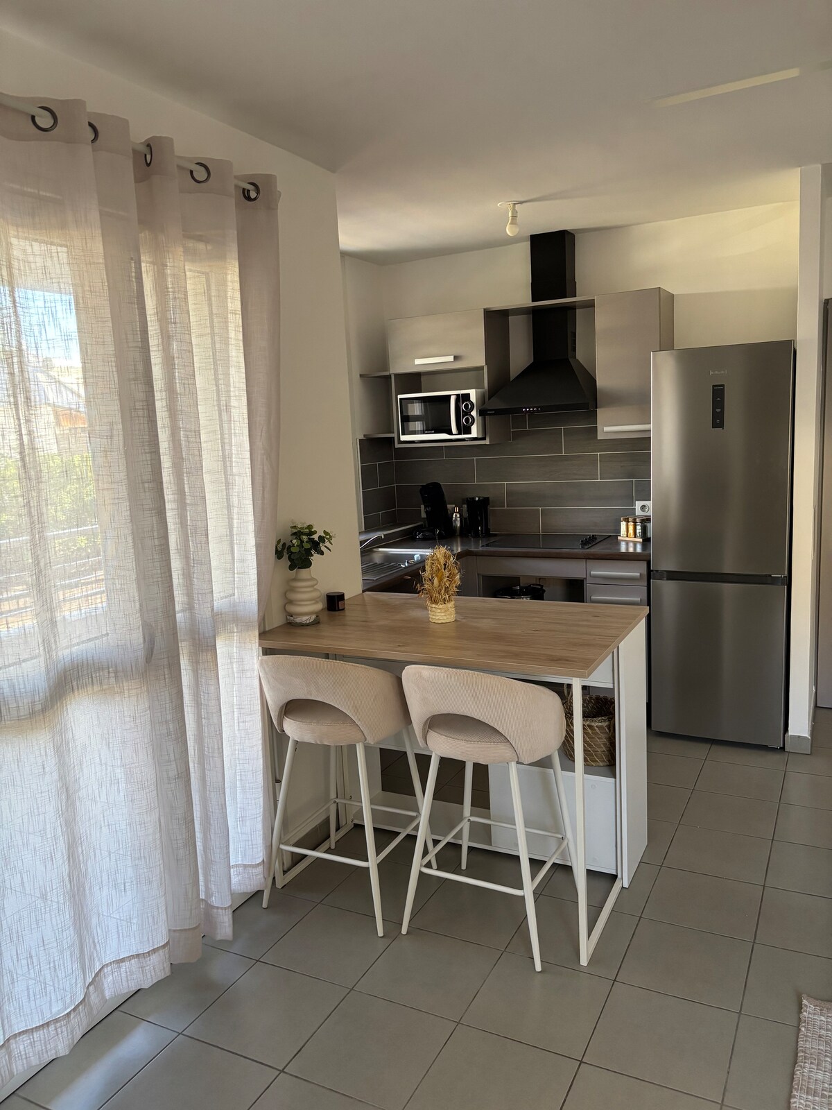 Grand studio tout équipé à quelques minutes à pied du centre-ville et du lagon.L'espace à vivre se compose d'un coin salon/cuisine de 35m2 et d'un espace chambre de 15m2 en mezzanine. La salle de bain est équipée d'une douche italienne. Une terrasse couverte pour prendre vos repas et vous détendre. L'appartement est calme et lumineux dans une ambiance cocooning.