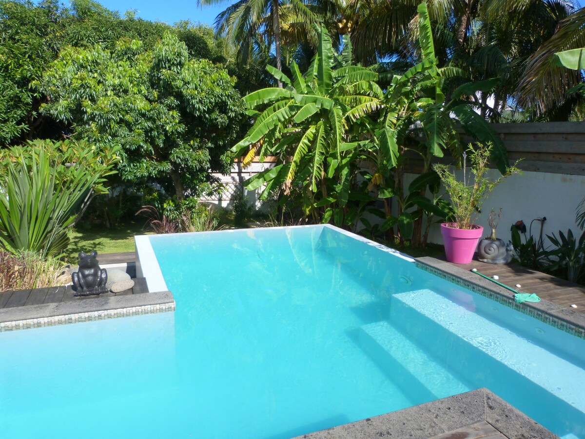 Paradis Lé La, Étang-Salé-də sülh bağınız! Hind okeanının heyrətamiz mənzərəsi olan sakit məhəllə, 1,800 m² tropik bağda yerləşən 4 taxta banqalo və 2 qonaq evi studiyası. Şərikli istirahət məkanları: 28°C duzlu su hovuzu, pulsuz cakuzi, barbekü sahələri, günəş vannası qəbul etmək və dart: hər şey Reunion günəşi altında unudulmaz tətil üçün bir araya gəlir. Bütün elanlarımız yalnız 2 böyük üçün nəzərdə tutulub. Adanı enerji ilə doldurmaq və araşdırmaq üçün ideal yer.