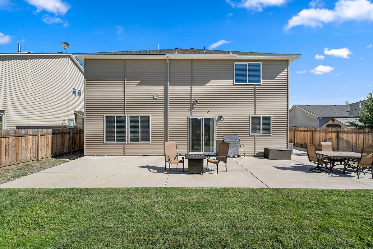 Family-friendly updated home, short walk from downtown Nampa and one block from NNU. Fresh flooring, sleek kitchen and baths, fully equipped for easy family meals. Unwind at the front yard firepit—firewood and s’mores fixings included—then sleep soundly on king, queen, and queen air mattress. Enjoy complimentary 2-for-1 winery tasting nearby, ideal for getaway or campus visits. Great for family events with plenty to do in the surrounding area!