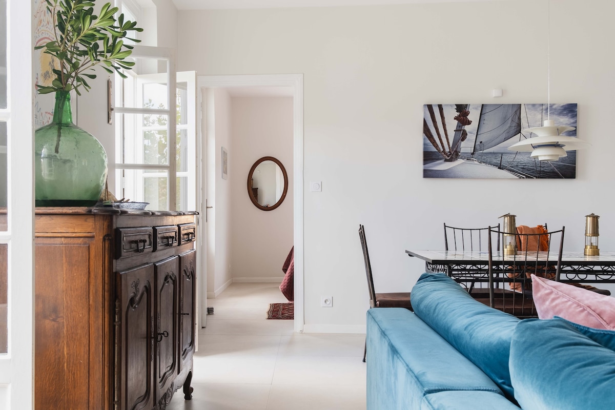 Our Loft is located on the 3rd and last floor of a large house dating from the 19th century. Recently renovated, it combines modernity and old-fashioned charm, with stone walls and wooden beams. The large living space with a direct view on the port and the mountains, all facing south makes it very pleasant to live in.