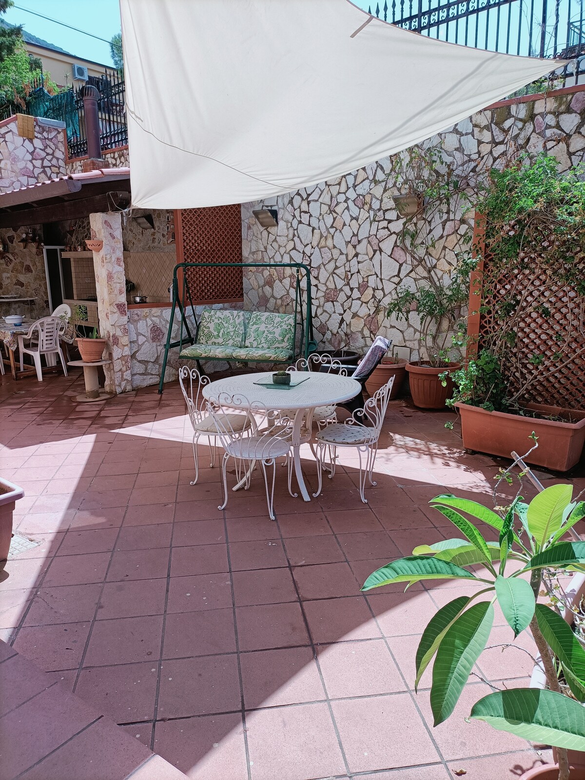 Villa a 300m dal mare di Carini con spiaggia rocciosa a 5 minuti dalla spiaggia sabbiosa di Capaci e 10 minuti dalla magnifica spiaggia di Mondello a Palermo 5 minuti dall'aeroporto 10 m da Palermo. Camere con aria condizionata e balcone privato . 350 m di giardino alberato.Tre bagni il1° con vasca da bagno il2°con doccia e il3° con lavatrice Cucina attrezzata microonde frigorifero macchina caffè . Sala pranzo con divani e TV.Parcheggio privato gratis. Wifi SI Barbecue Si/ANIMALI DOMESTICI