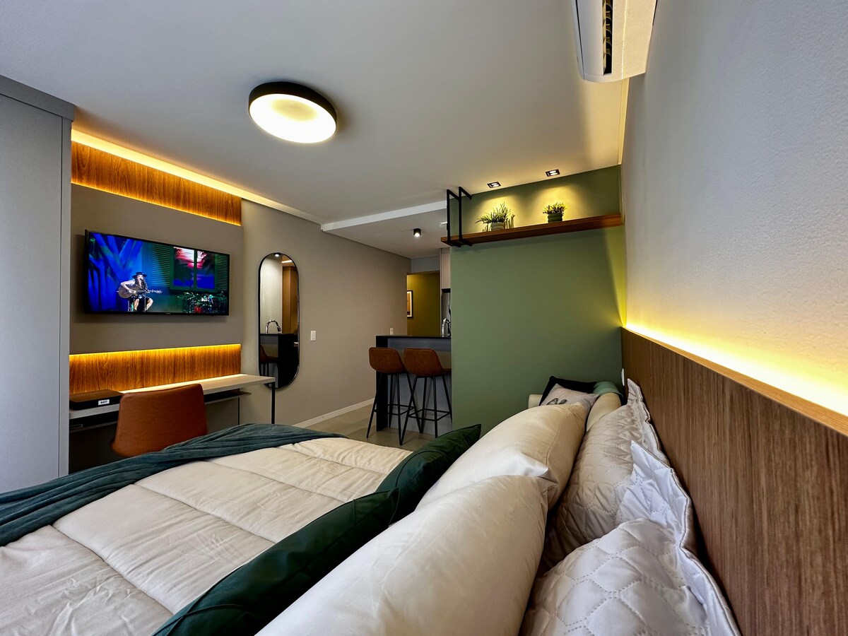 Navegantes məhəlləsində, Capão da Canoa-da loft novinho, isti və soyuq kondisioner, internet, təchiz olunmuş mətbəx, kasa, hava fri, mikrodalğalı soba, barbekü ilə. Rahat çarpayı və rahat işıqlandırma. Keyfiyyətli döşəkağı və dəsmallar. Ev ofisləri üçün yer. Hovuzu, fitnesi, qaçış cığırı, məkan uşaqları olan damüstü bina. Qaraj yeri var. Rahat və praktik qonaqlama üçün mükəmməldir. Çimərliyin yanında, şəhərin ən nəcib məhəlləsində!