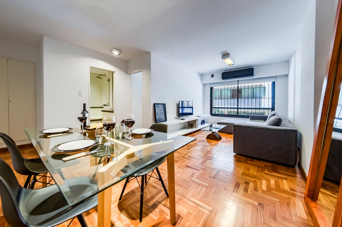 Nueva Córdoba mərkəzində hovuz, idman zalı, cəm və terrası olan yeni mənzil! Əla qonaqlama keçirməyiniz üçün bütün komfortlarla. Təchiz olunmuş mətbəx, qəhvə maşını, toster, paltaryuyan maşın, ağıllı televizor, Wi-Fi, kondisioner, istilik sistemi. Yataq dəsti daxildir (qonaqlamaya adambaşına 1 hamam dəsmalı və qrup üzrə 1 əl dəsmalı daxildir).
