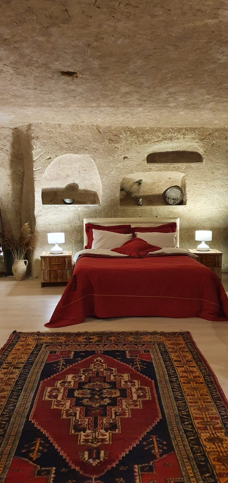Xüsusi bir yuxu bayramı üçün mükəmməl sehrli qədim mağaralar ilə əhatə olunmuşdur.ARC qalmaq üçün unikal yerdir. Bütün mağara evi sizin olacaq. Bu, Uçisar şəhərinin müqəddəs bir hissəsində yerləşir. Burada 3 otaq var ki, onlardan biri yüz illərdən gələn orijinal mağaradır. Çarpayının üzərində örtük var, lakin orijinal kiçik qum olduğu üçün bir az damcılaya bilər. Fasad balkonu var. Evdə Wi-Fi var (dərə sahəsi və mağara evi olduğu üçün hər otaqda gecə işləyə bilər)