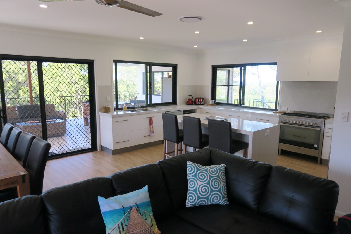 “Heaven on the hill” Summerhouse is located on the Discovery Coast, within 500 klms of Brisbane and only 80 minutes from Bundaberg or Gladstone. Situated in a quiet cul-de-sac, the house is close enough to walk to shops (700m) and famous Agnes Water surf beach (<1k) but far enough from the hustle and bustle to enjoy the verandah and a good book. The house is perfect for holidays with ocean views from most rooms. STRICTLY NO PARTIES; 25yo+ to book