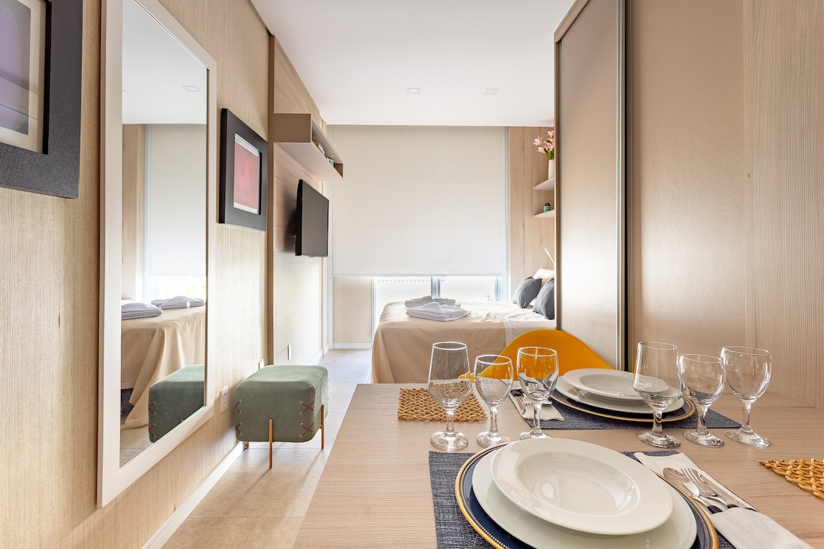 Müasir Dupleks Studiyası, qonaqlamanız üçün mükəmməldir. Alphaville-dən 5 dəqiqəlik məsafədə, Joze Korrêa idman zalı, aptek, bazar, idman zalı, çörək zavodu və restoranlara yaxın imtiyazlı mövqeyə malik olan Bethaville məhəlləsindəyik. Kastelo Brankoya eksklüziv giriş. Mətbəx qab-qacaq və məişət texnikası ilə təchiz olunub. Yataq örtüyü, yastıqlar və dəsmallar təmin edirik. Əmlakda Wi-Fi, parkinq yeri, 24 saat konsyerj, üzgüçülük hovuzu, fitnes mərkəzi, camaşırxana və mini bazar var.