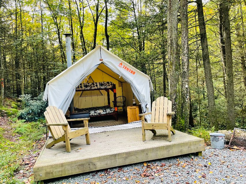 Uzaqlaşmaq istəyən kiçik qruplar, ailələr və ya cütlüklər üçün qlempinq sahəsi. Bu düşərgədə 10’x12’ kətan çadırı və əlavə yataq yeri üçün daha kiçik çadır var. Yarğanın düz yanında yerləşir. Appalaç cığırı, Biq-Krik Şərab Zavodu, Beltzvil Gölü, Mavi Dağ Xizəyi və MTB Resort, Cim Tor və daha çoxuna dəqiqələr! Su idman növləri, piyada gəzintisi, dağda velosiped sürmək, balıq tutmaq və ya sadəcə Kriksayd məkanından zövq almaq üçün gəlin! Kremə sıçrayıb sərinləyə bilərsiniz.