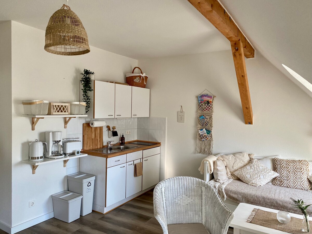 Mənzil BehrenSCHLAF-da yerləşən fermada qalır və yaxşı bərpa edilmiş təbiət və kəndləri kəşf edir. 1780-ci ildə tüstü evi kimi tikilmiş ferma tarixi qoruma altında qorunur və sevərək qorunur. Cənub tərəfdə terrası və bağımızın mənzərəsi olan rahat mənzilimizdə qalırsınız. İkiqat çarpayı və qatlana bilən divan çarpayısı 2 qonağın rahat yatmasına imkan verir, lakin 4 nəfər də mümkündür. Tezliklə sizi gözləyirik! Ailəniz Behrens