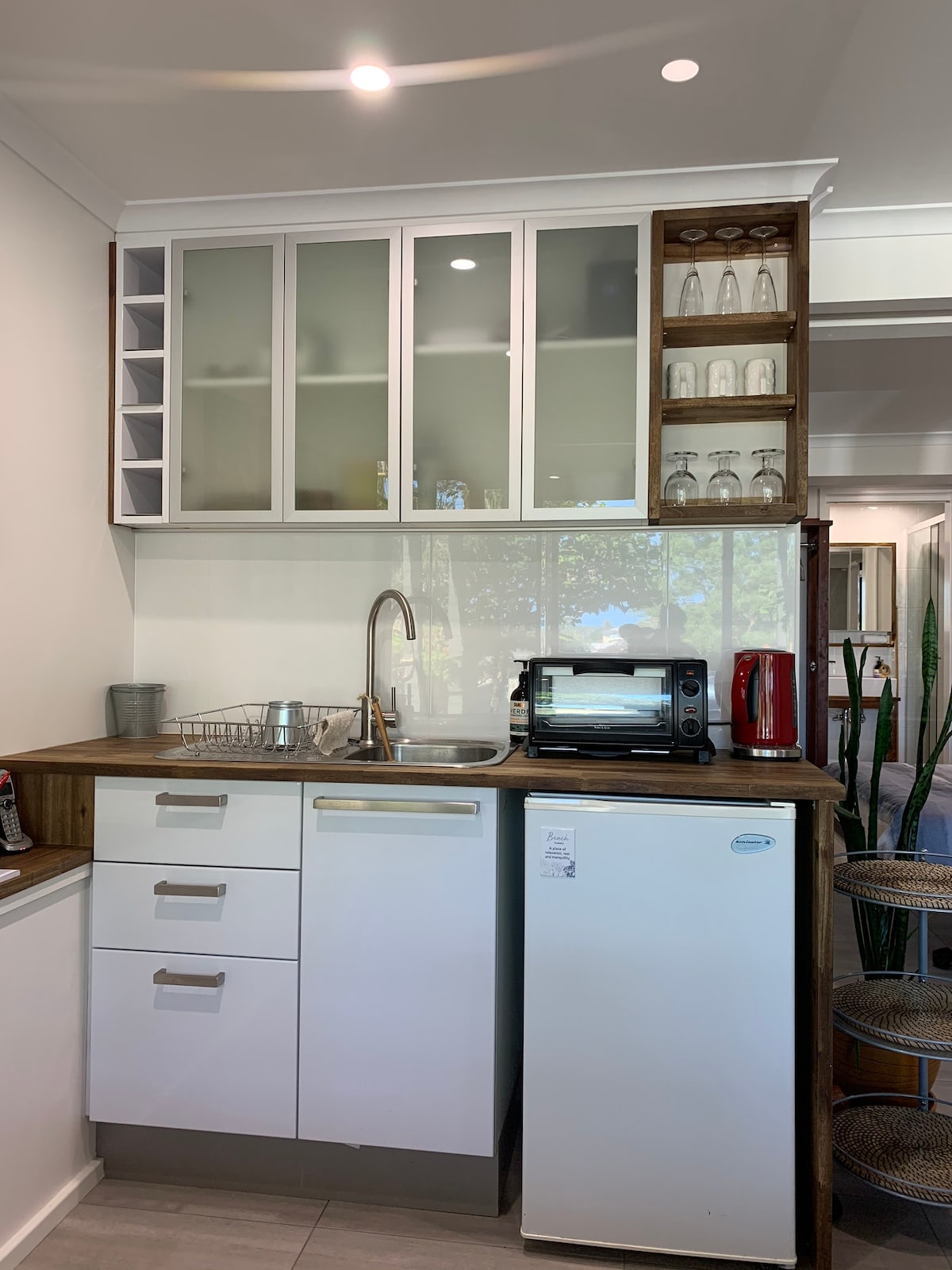 Bu yaxınlarda tikilmiş, ayrıca girişi olan mövcud evimizin altında pivə bağı və açıq havada isti duş olan Parthenia Studio yerləşir. Qəhvə maşını, çaylar, süd və bəzi əsas əsas yeməklər üçün nəzərdə tutulub. IGA, Vintage Cellars, Çörək, Takeaways və Cafés 10 dəqiqəlik məsafədədir. Caringbah Qatar Stansiyası vasitəsilə Westfields Miranda avtobusu qapıdadır. Prosekko, ağ, rozzetka və qırmızı şərab kolleksiyası otağınızdadır və Etibar Qutusuna ödənilə bilər.