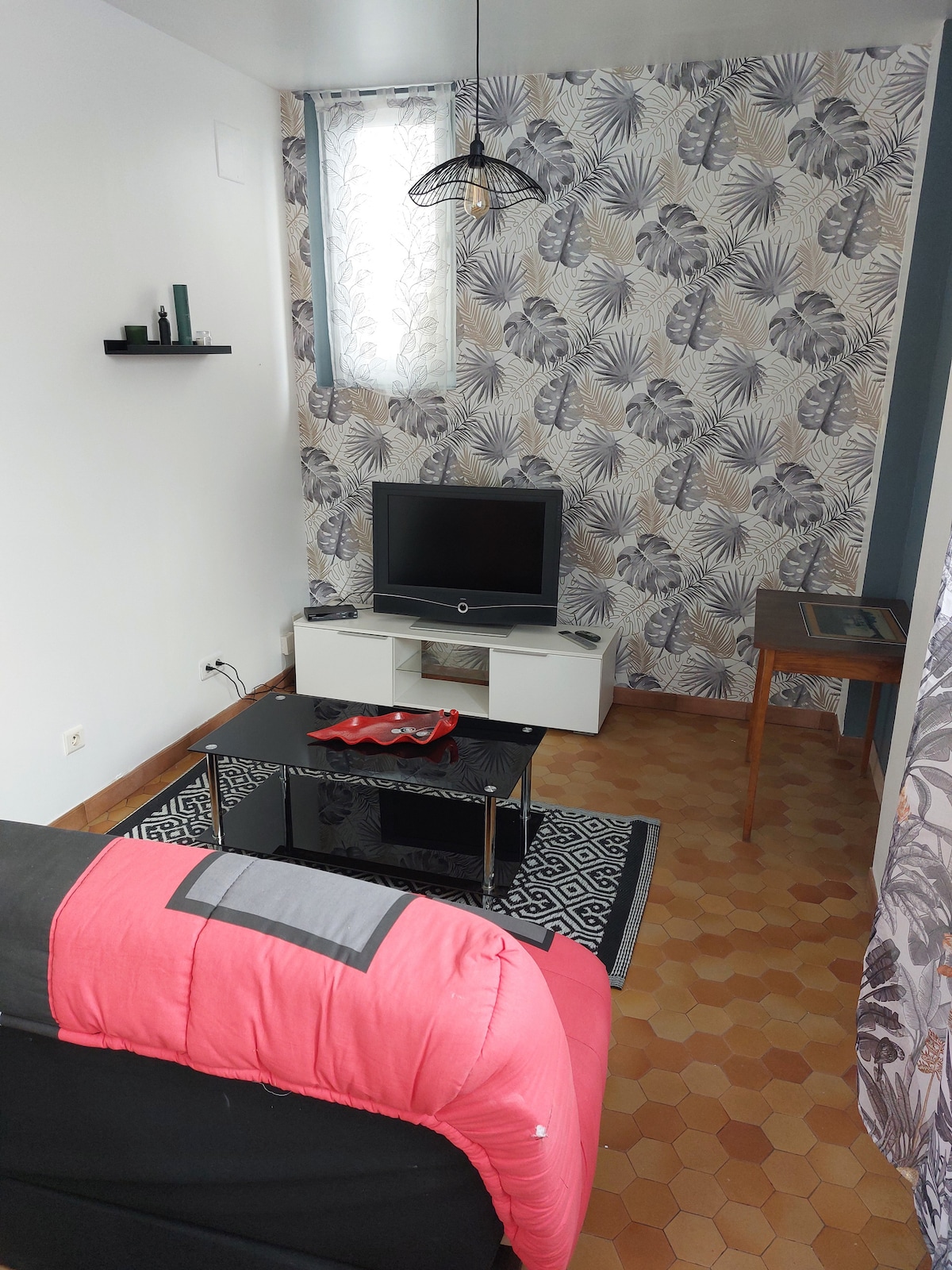 Studette de 15m2 (Hauteur: 2m15) indépendante, au rez de jardin de notre maison. Située entre ville et campagne, elle se compose d’une salle d’eau, d’un coin kitchenette et d’un lit en 140. Une petite table est à votre disposition à l’extérieur. Stationnement dans la cour de la maison ou dans la rue. Pas d’animaux ni de fêtes svp. Attention : nos pièces de vie sont situées juste au dessus de la studette. Ainsi, vous pouvez entendre du bruit durant votre séjour!