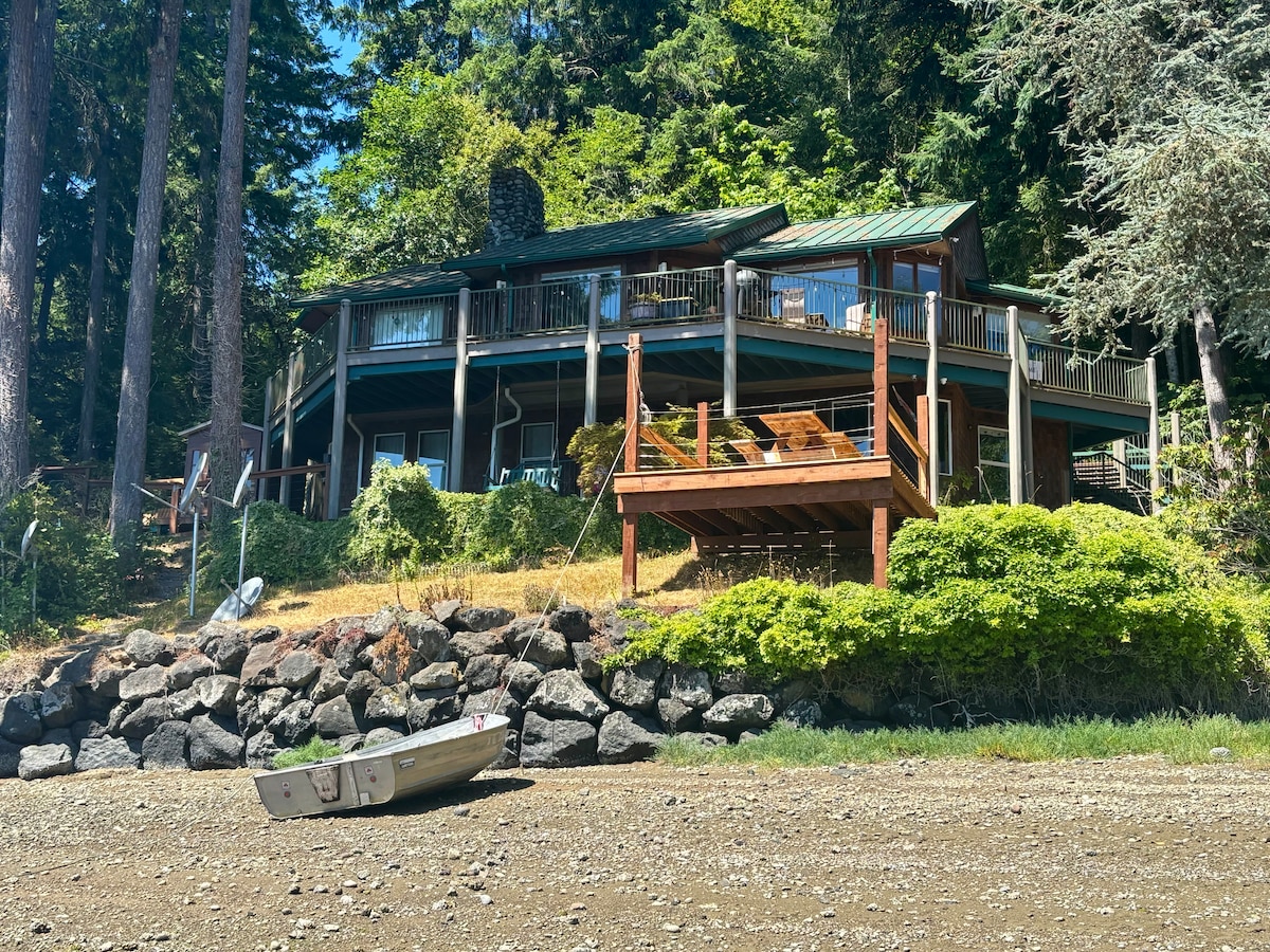 Möhtəşəm Hammersly Inlet sahilində yerləşən bu füsunkar bir yataq otağı 3/4 hamam çimərliyi süitasında sakit bir gəzinti ilə özünüzü təbiətə qərq edin. Böyük göyərtədə dincələrkən cənubi Puget Sound-un dincliyini və sakitliyini təmin edin. Möhürləri, otları, quşları, balıqları, maralları və yaz və yayda - Orca balinalarını seyr edərkən oddan zövq alın, həyətdə oyunlar oynayın, kayak sürün və ya yelləncəkdə yellənin! Sadəcə bir neçə addımlıqda 400 metrlik xüsusi çimərliyə birbaşa çıxışı olan şərikli pilləkənlər tapa bilərsiniz.
