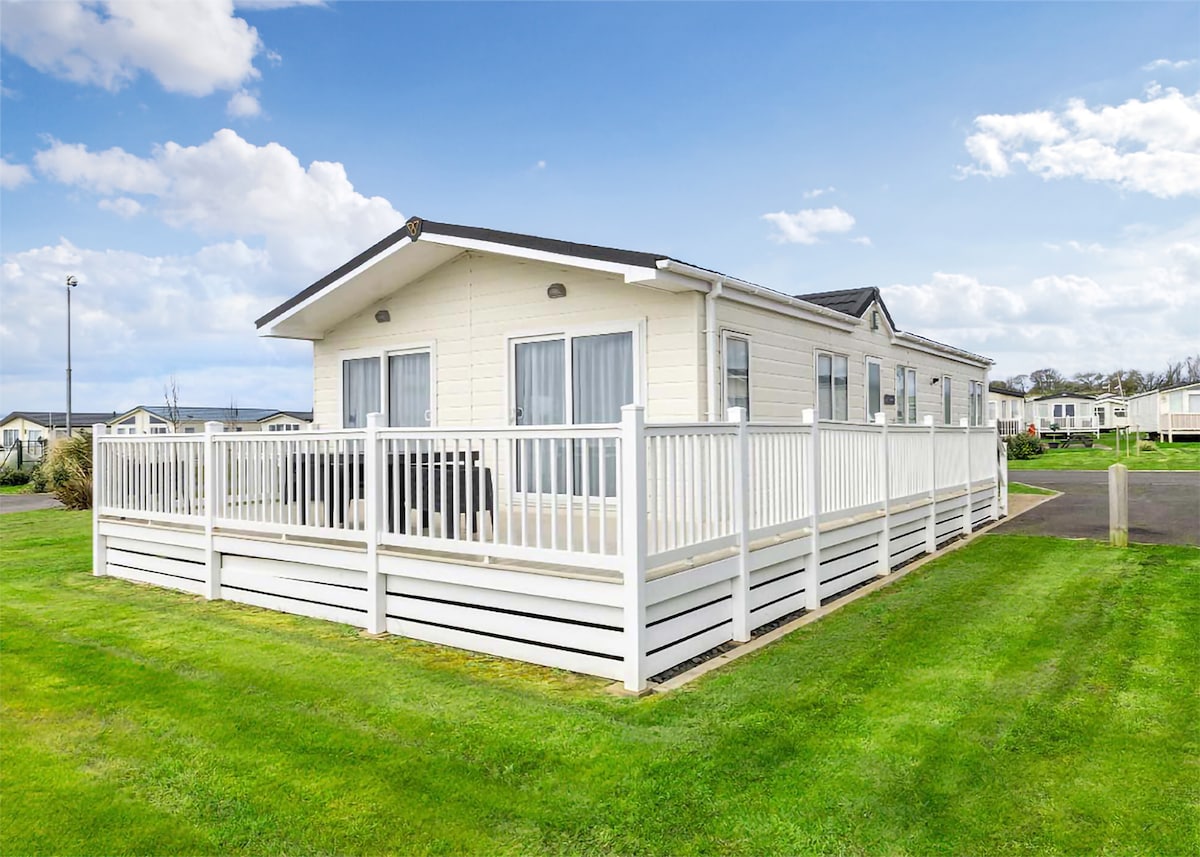 Tətil parkının sakit bir ərazisində, möhtəşəm estuari və dəniz mənzərələri olan, cənuba baxan 2 yataq otaqlı dağ evi. İşıqlı, havadar yaşayış yeri 4/5 nəfərlikdir (cütlüklər və ailələr üçün idealdır, lakin maksimum 4 böyük yerləşə bilər). Səyahət çarpayısı və uşaq üçün yüksək stul mövcuddur. Açıq planlı yaşayış məkanı verandaya, çimərliyə və açıq mənzərələrə baxır. İmkanlara duş otağı, yaxşı təchiz olunmuş mətbəx və soyuducu dondurucusu, paltaryuyan maşını və əlavə saxlama yeri olan yardımçı otaq daxildir. Yaxşı döşəməli itlər qəbul edilə bilər.