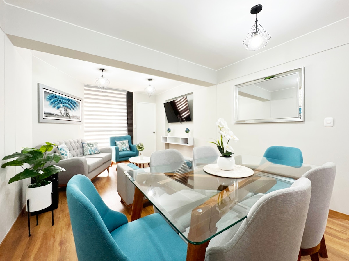 Sakit və mərkəzdə yerləşən bu qonaqlama yerinin rahatlığından zövq alın. Burada 2 Ağıllı TV, soyuducu, mikrodalğalı soba və daha çoxu var. OXXO mağazası 1-ci mərtəbədə. Xorxe Çavez Beynəlxalq Hava Limanından 10 dəqiqə, Plaza San Migel Mall, Parque de las Legendas və Universidad Católica-dan 5 dəqiqədən az məsafədə. Playas dövrəsindən 5 dəqiqə.