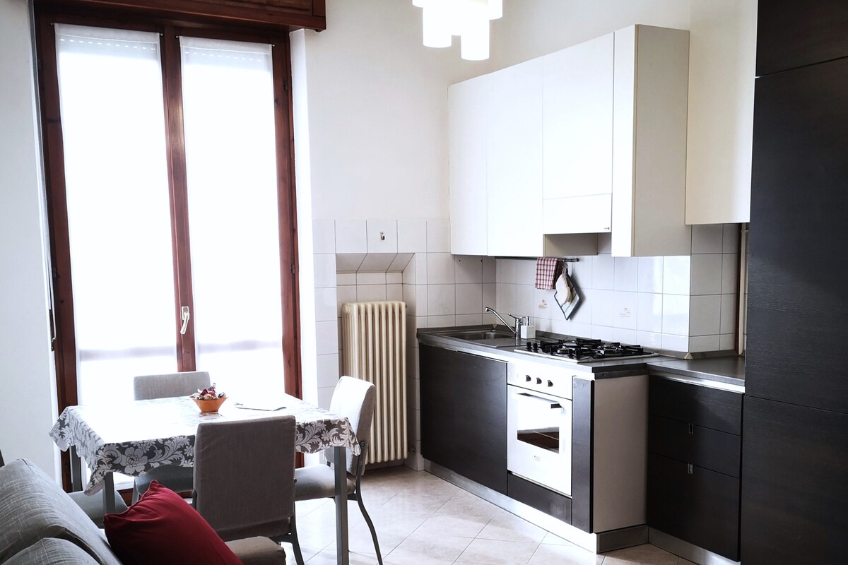 Bilocale confortevole e luminoso, situato al secondo piano in un complesso condominiale con giardino formato da villette e appartamenti. Dista 300 m. dalla Metropolitana per Milano. Funzionale come base di appoggio per visitare Milano, Bergamo, Monza. L'Host che vi riceverà parla solo italiano.