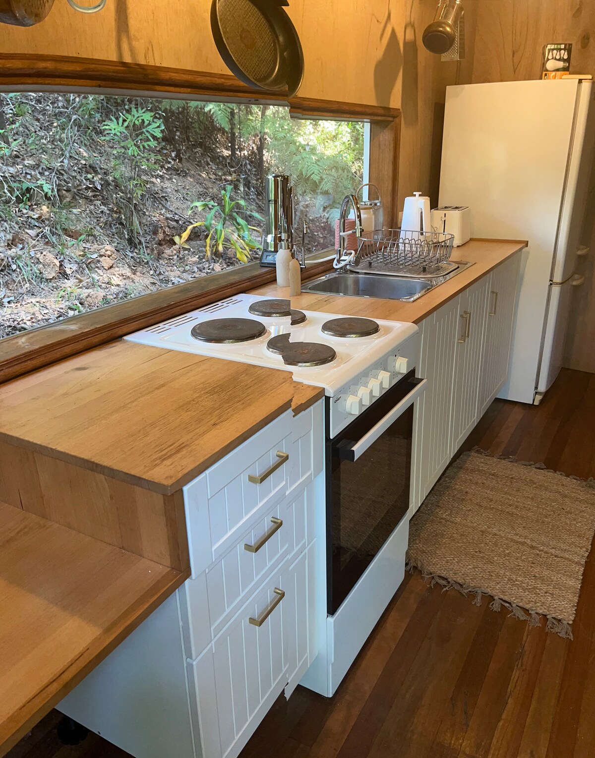 Əlimdən gələni götürün və sizi Vuds vasitəsilə Suya yol göstərim… Su və Taxta ağacların örtüyünün altında yerləşən və Purling Brook Şəlaləsi yürüyüş yollarından bir neçə addım aralıda yerləşən rahatlığa malik kabinədir. Burada istirahət etmək imkanınız var... və ya aktiv olmaq – Qondvana yağış meşələrinin çox xüsusi bir hissəsi ilə əhatə olunub, Qızıl Sahilin bu parlaq işıqlarının səs-küyündən 50 dəqiqədən az məsafədə. Bəli, səhər yeməyi barından gördüyünüz budur.