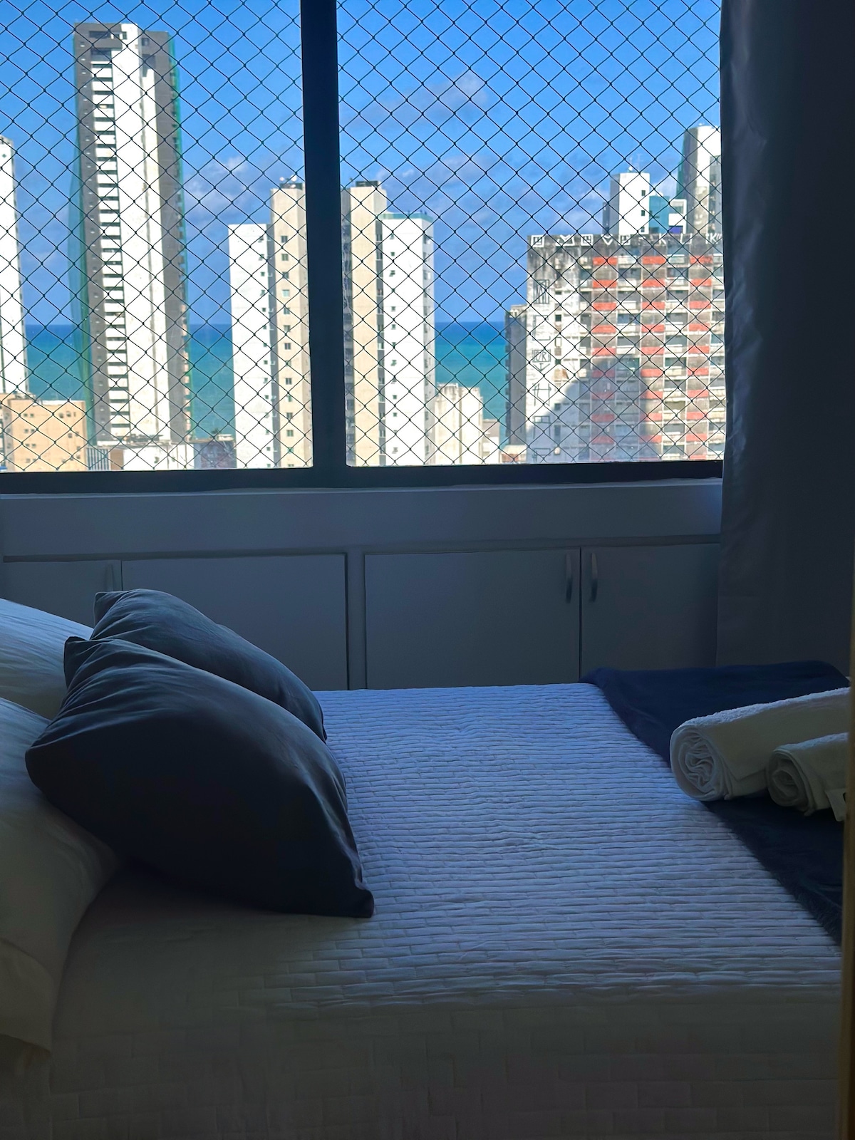 Hava limanından və köhnə Recife və Konqres Mərkəzindən 15 dəqiqəlik məsafədə dənizə baxan studiya. Boa Viagem Beach-in ən populyar və təhlükəsiz yerində, Seu Tito restoranı, Alphaiate barı və Borsoi kafesi, yaxınlıqda 24 saat rahatlığı olan mağaza və Assaí supermarketi olan köhnə və ənənəvi bina. Yaxşı daxili quruluşu, mətbəxi, Wi-Fi, 150-179 sm ölçülü çarpayısı, kondisioneri və yaxşı duşu olan praktik və dinamik insanlar üçün idealdır. Qısamüddətli qonaqlamalar üçün rahat döşəkdə yerləşdirilmiş üçüncü qonaq.